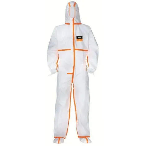 Combinaison uvex 4B MFunidirectionnelle protection chimique type 4, 5/6N° de modèle : 8959, N° d’article : 890994coloris : blanc/orange matériau : feutre PP avec revêtement en PE – un confort exceptionnel matériau respirant, léger et flexible – coutures teintées orange pour une protection optimale et une bonne visibilité. – les boucles à doigts centraux empêchent les manches de glisser – un ajustement optimal pour un confort de port élevé – retrait sûr et agréable grâce aux élastiques sur la capuche, les bras et les jambes – moulure de manche découpée pour plus de sécurité – étanche aux particules et aux projections – propriétés antistatiques – protection contre les agents infectieux – protection contre les pesticides – sans silicone et protection contre les agents chimiques qui perturbent la peinture/catégorie PSA IIIen 14605:2005+A1:2009 (type 4)en ISO 13982-1:2004+A1:2010 (type 5)en 13034:2005+A1:2010 (type 6)en 1149-5:2008EN 14126:2003+AC:2004EN 1073-2:2002DIN 32781:2010 – XXXLTEKN. Respecter la fiche technique et/ou les informations utilisateur ! Ce texte a été traduit par une machine.
